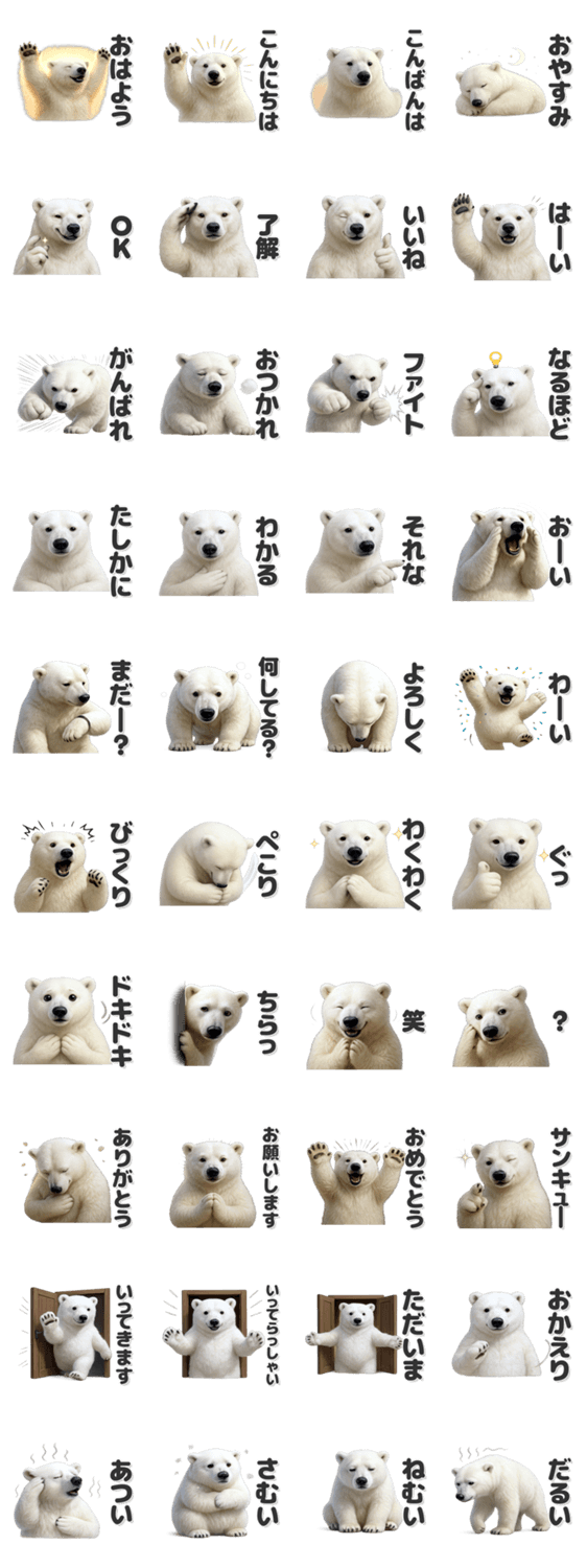 シンプルで可愛い白くまの毎日使えるスタンプです。/癒し/動物/優しい/挨拶/表情/返信/相槌/定番/基本/便利