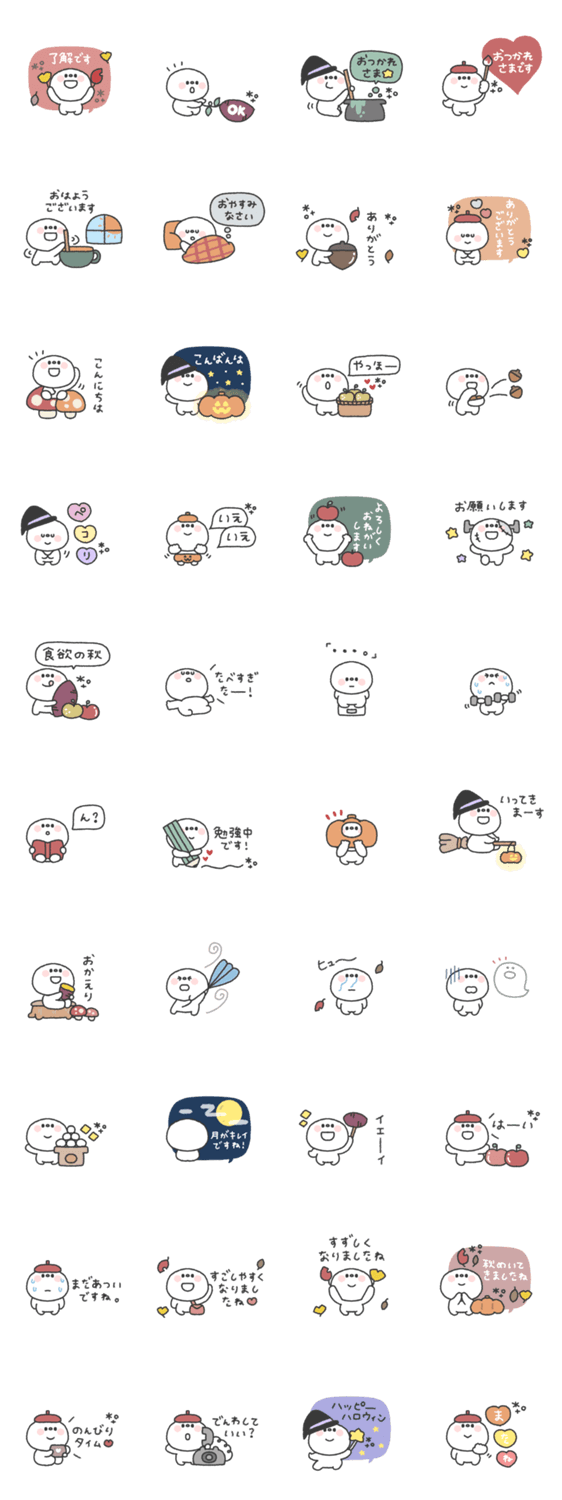 ゆるくてかわいいスタンプです。かわいい/手書き/スマイル/シンプル/吹き出し/あいさつ/秋/ハロウィン