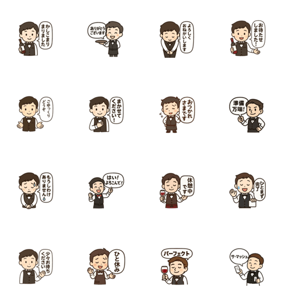 | スタンプ説明 | レストランの現場をテーマにしたスタンプ! シェフ、ホールスタッフ、ソムリエ、そしてチームワークやおもてなしを大切にする人にぴったり。 |