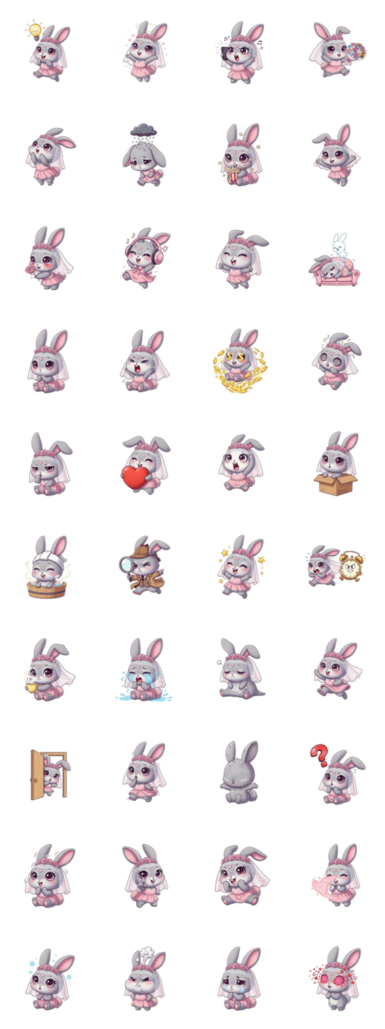 | スタンプ説明 | 花嫁うさぎ結婚します、ロマンチック、かわいい、幸せ、ウェディング、愛、甘い瞬間、夢のような雰囲気、LINEスタンプ、イラスト、気持ち表現、 |