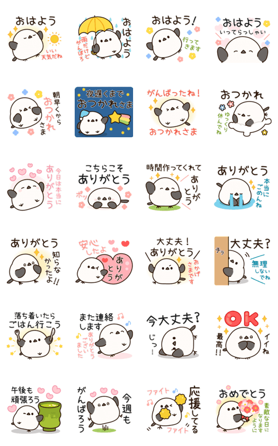 毎日使えるシマエナガのやさしい長文のスタンプです♪スタンプひとつで、やさしい気持ちをしっかりと伝えられます!