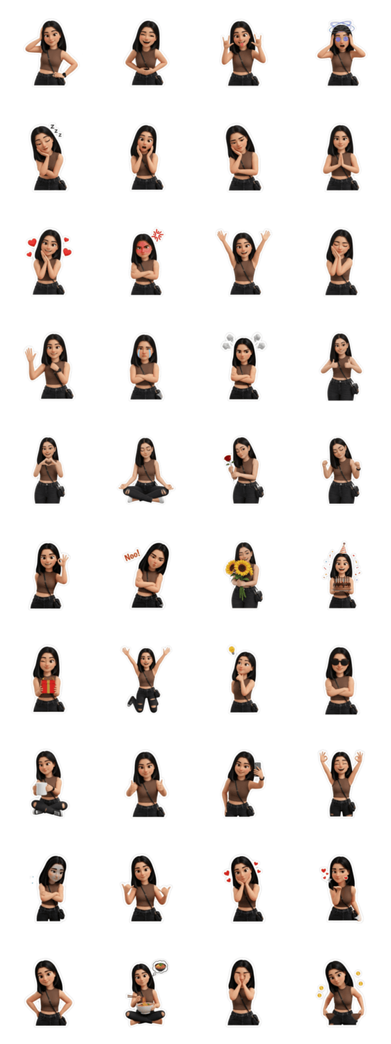 Jeab is a playful girl with the cutest expressions and gestures. Perfect for showing your daily moods happy, shy, confused, or hungry