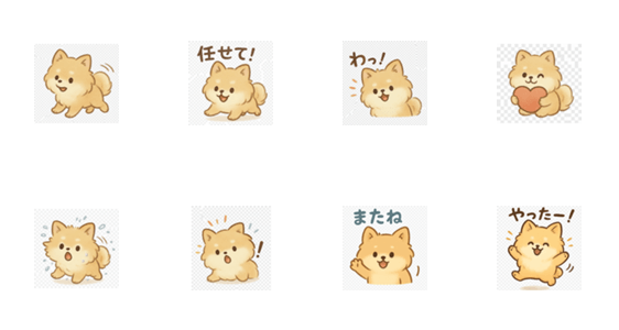 可愛い犬のキャラクターが日常会話をサポート!「任せて!」「わっ!」「あー」など使いやすい日本語フレーズ付き。家族や友人とのやり取りが楽しくなるスタンプセット。
