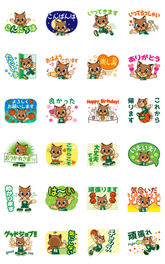 | スタンプ説明 | 普段使いしやすい挨拶や応援の声かけをラインナップしたクゥーちゃんのスタンプ第2弾です【日立ハイテク クーガーズ チーム公式LINEスタンプ】 |
