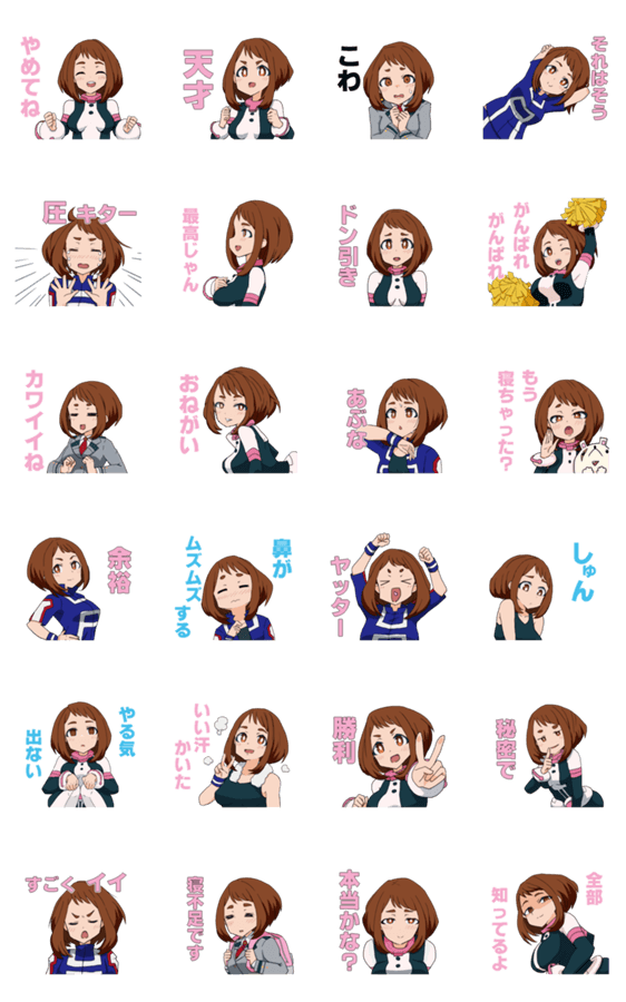 基本的に使いやすい言葉を並べてみました。お茶子オンリースタンプ第2弾です。 ※LINE Creators Collaboration 僕のヒーローアカデミア参加スタンプです。