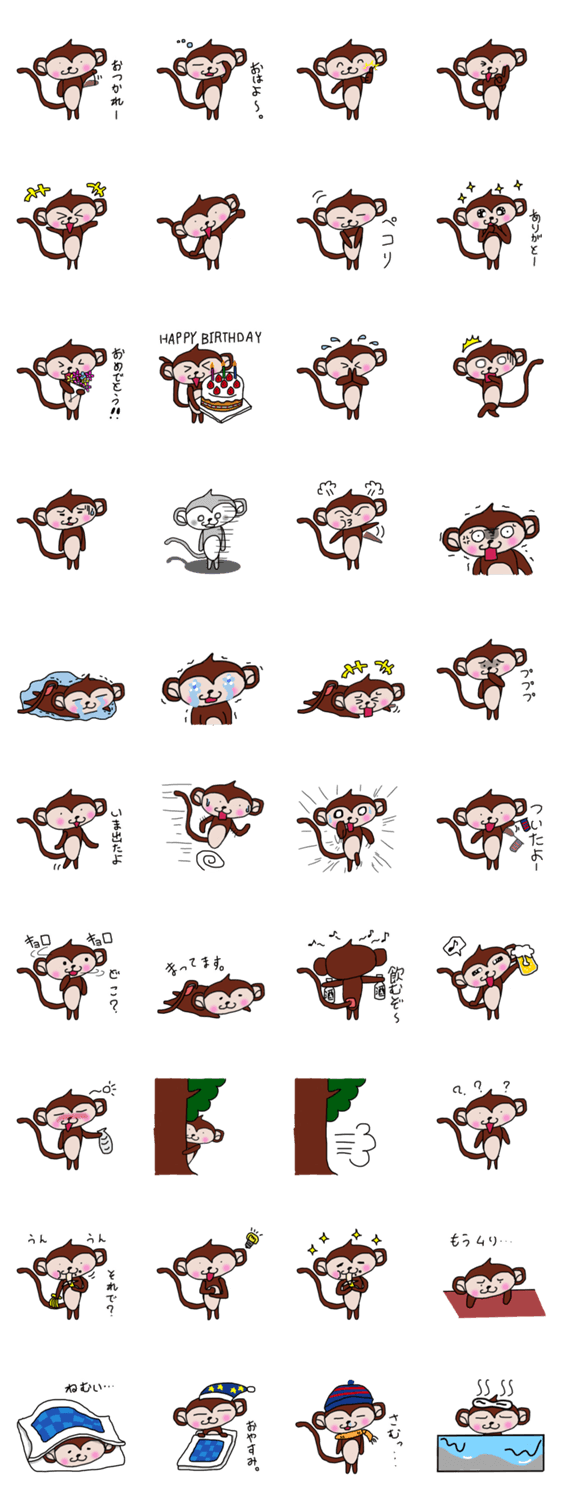 さるの"さるっち"のスタンプです。挨拶や返事等の日常会話で使って下さい。