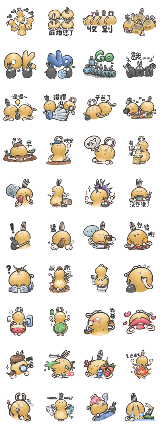 | スタンプ説明 | Record the daily life of four peanut rabbits in the garden They usually looks very tiny, cute, and occasionally noisy. Let's take a look at peanuts together! |