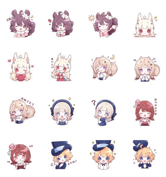 オリジナルキャラクターのめう、さら、リスちゃん、バレンタインちゃん、セーラーちゃん、そしてゲストのエクリーを詰め込んだLINEスタンプです!