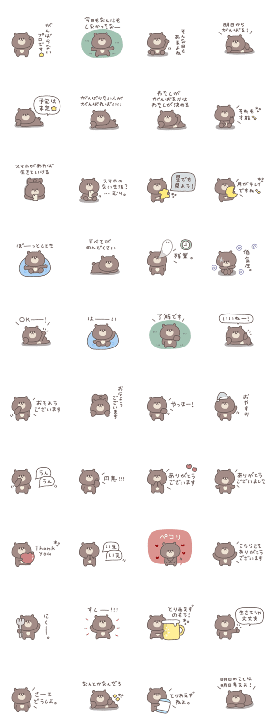 一つあると便利な小さくてかわいいくまのスタンプです。 くま/大人可愛い/シンプル/あいさつ/吹き出し/くすみカラー/無気力/ネガティブ