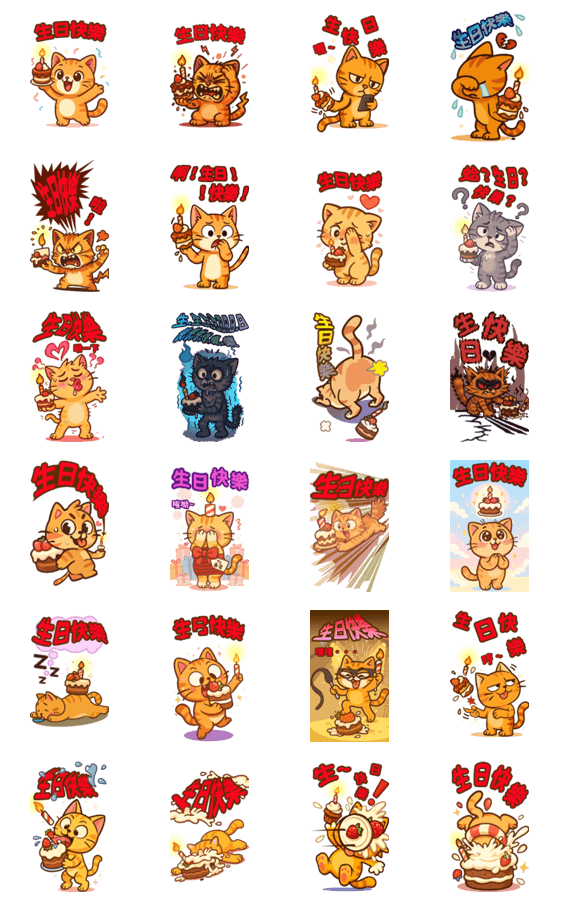 Wishing your family and friends a happy birthday! These stickers will show up extra large in chats.
