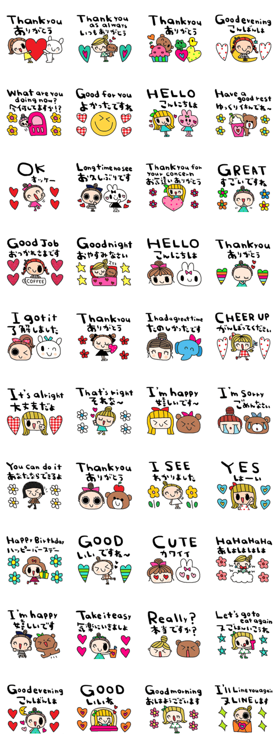 シンプルな日常会話スタンプです。お気遣いスタンプ 日本語&英語スタンプ