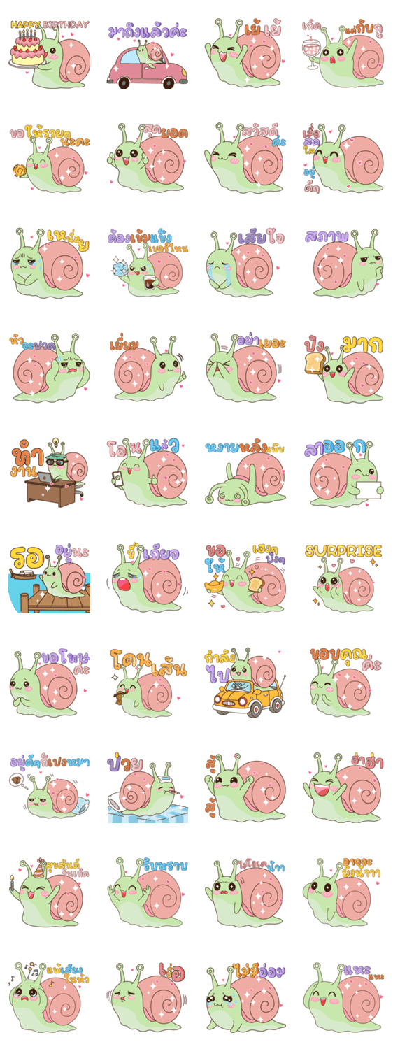 Nuto the cute snail slow but full of heart! Spread smiles every day with her sweet and sparkly stickers.