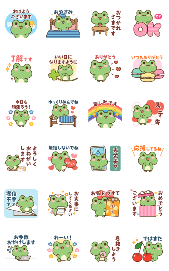 毎日ずっと使える♪優しい言葉が送れるカエルのケロちゃんのポップアップスタンプです。