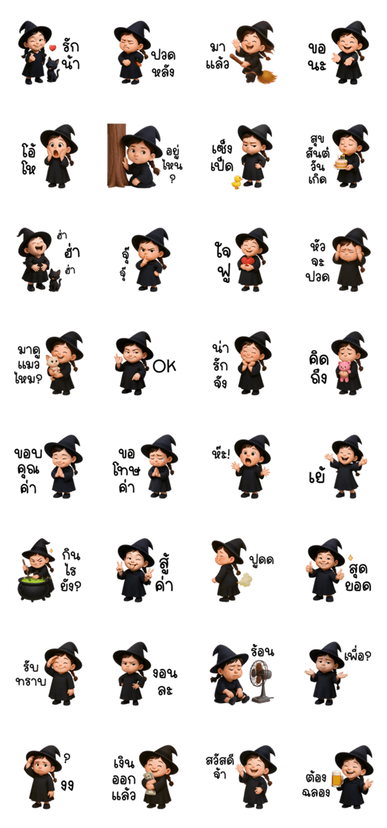 Cute Witch with Braids for Halloween -LINEスタンプマニア