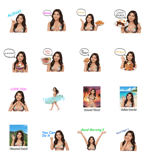 スタンプ説明 ハワイのロコガールのキュートなスタンプ
