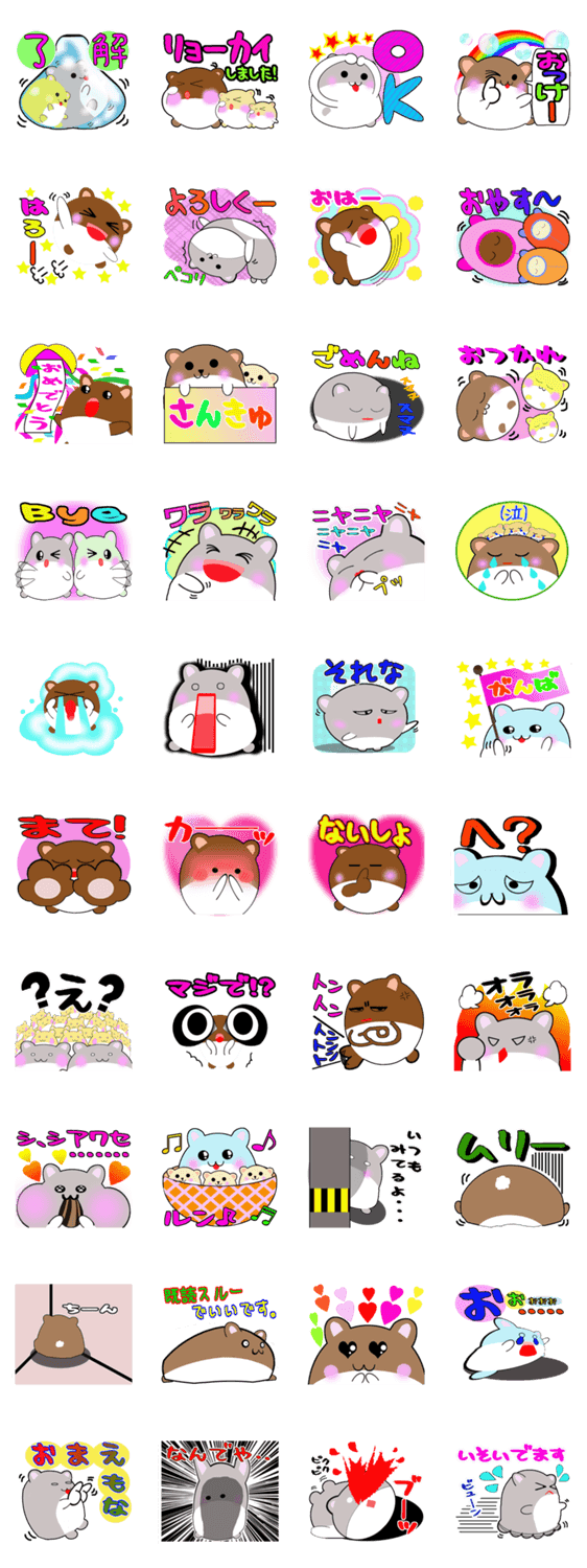 かわいいハムハムと大き目文字の見やすいスタンプです♪