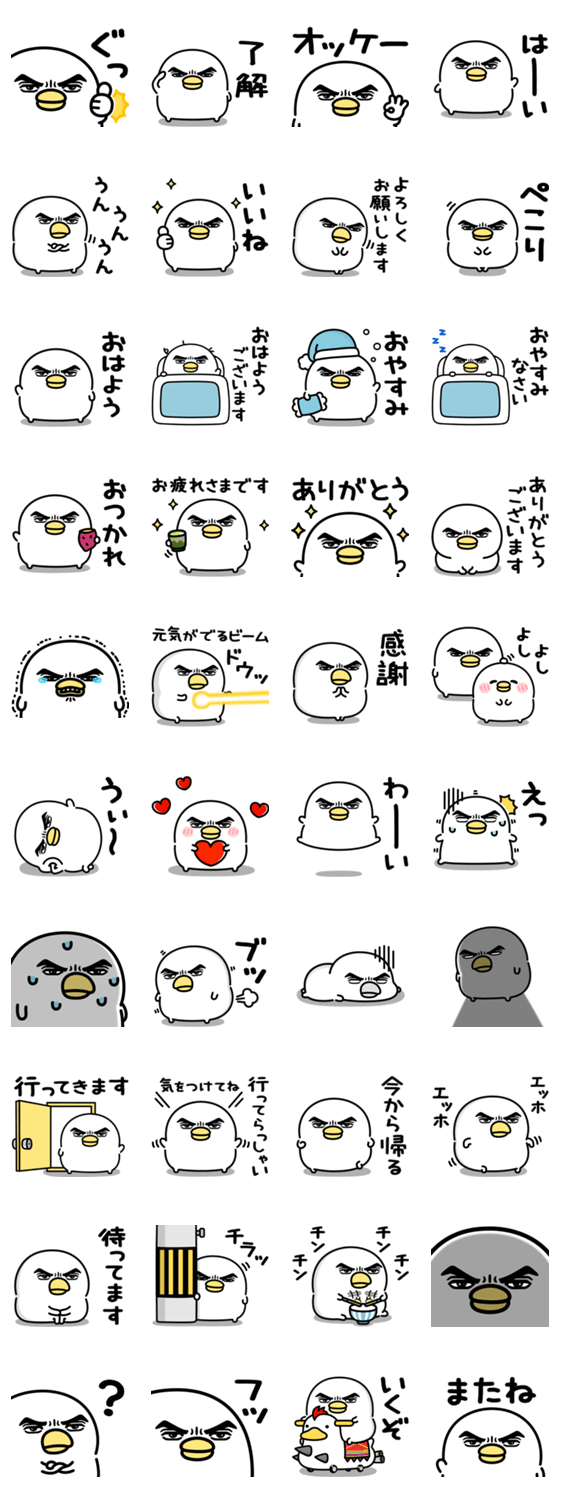 うるせぇトリの日常でずっと長く使えるキリッとした顔のスタンプです。