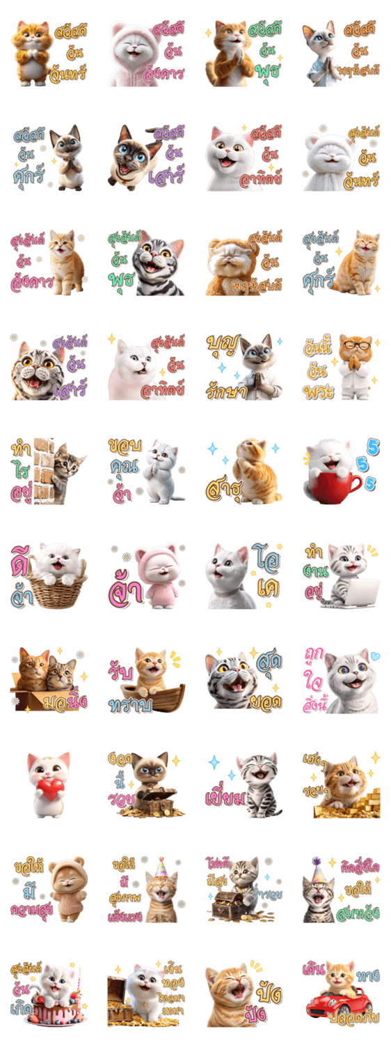 | スタンプ説明 | Cute Cat greetings3D Big text bubbles Pastel color Monday HBD Happy Birthday Persian Scottish fold American shorthair British Shorthair Siamese white orange cat |