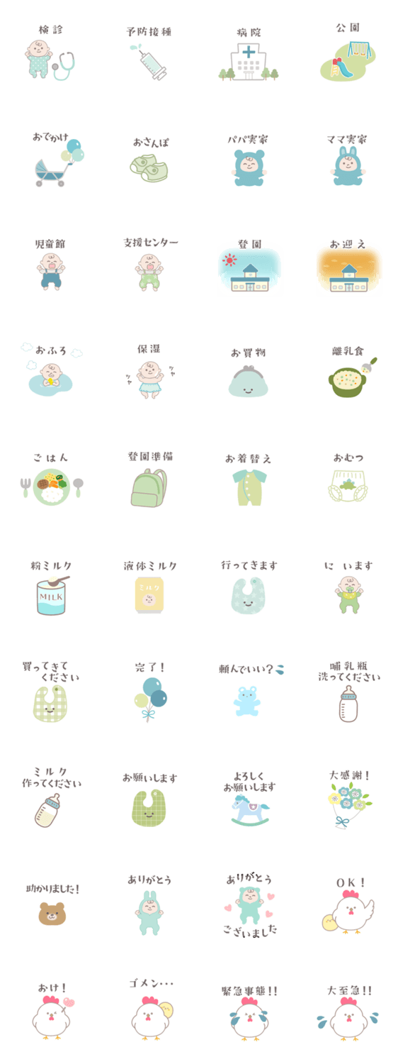 ※ピンク版もあります。組み合わせて使えます。赤ちゃん/女の子/男の子/子育て/育児/連絡/お父さん/お母さん/パパ/ママ/こども/スモーキーカラー/かわいい/じいじ/ばあば
