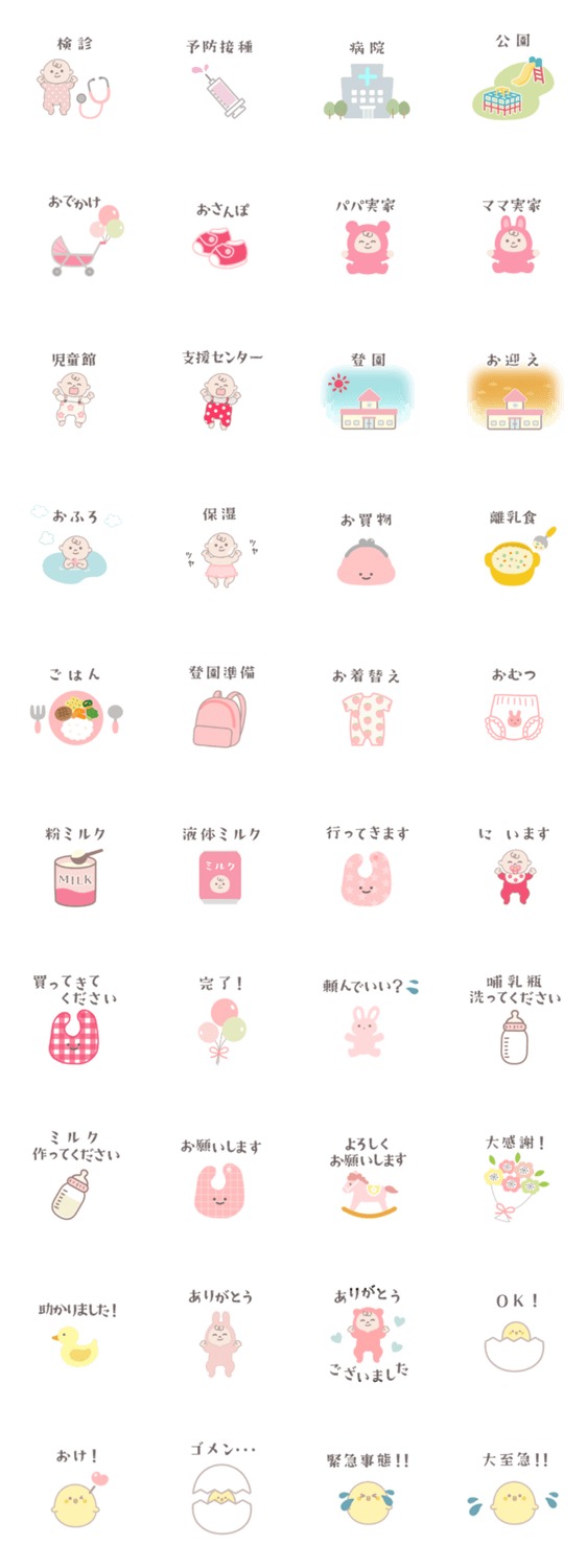 ※ブルー版もあります。組み合わせて使えます。赤ちゃん/女の子/男の子/子育て/育児/連絡/お父さん/お母さん/パパ/ママ/こども/スモーキーカラー/かわいい/じいじ/ばあば