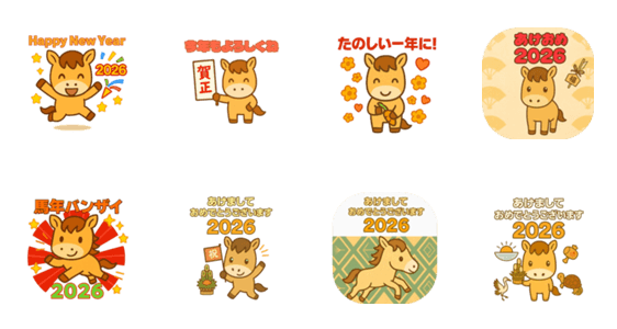 かわいい馬のあけおめスタンプ!2026年の新年のご挨拶や日常使いにぴったり!