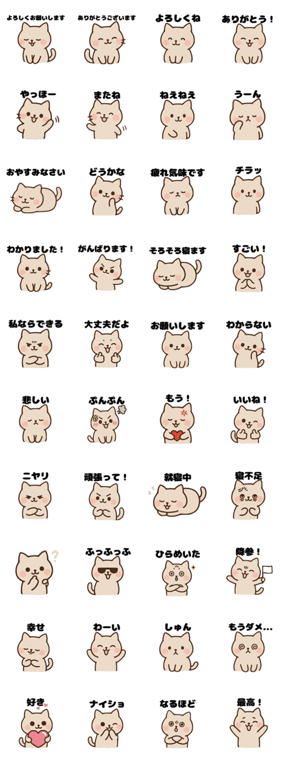 丁寧でキュートなねこたち。さまざまな状況に対応しており、日常生活で使えるスタンプです!