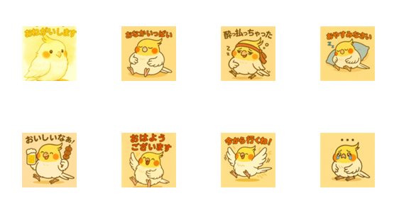 Meet Poko-chan, the cute cockatiel! This sticker set features cheerful greetings, waving wings. Perfect for bird lovers and parrot fans!