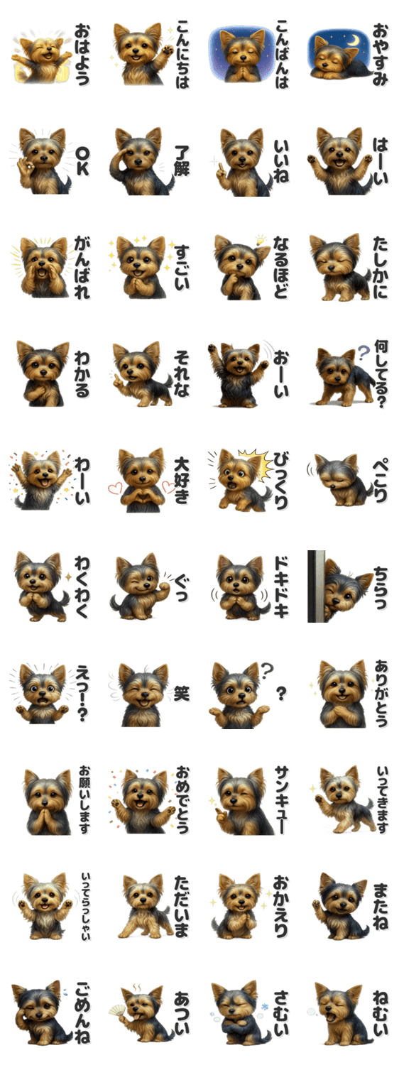 可愛いヨークシャーテリアのスタンプです。/かわいい/シンプル/日常/使いやすい/ゆるかわ/挨拶/動物/癒し/友達/家族/アニマル/見やすい/便利/返事/よく使う