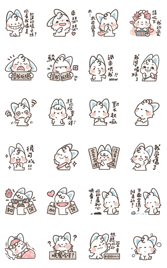 白ネコのあいうえお・・・ってるスタンプ