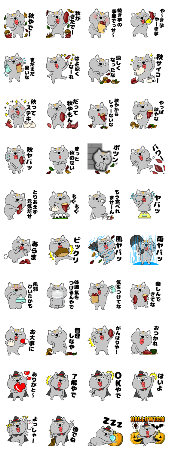 ハロウィンスタンプ入り 毎日使えるブサ可愛いネコの秋を感じるスタンプです