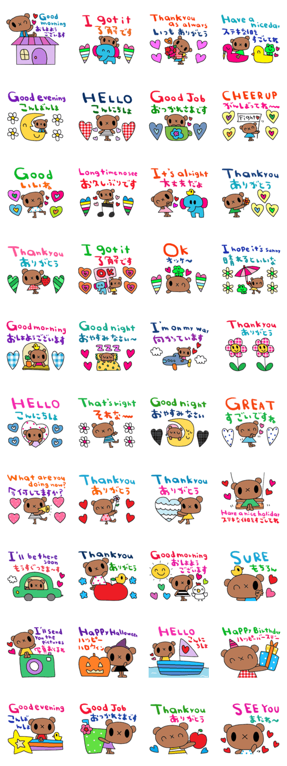シンプルな日常会話スタンプです。お気遣いスタンプ 日本語英語スタンプ