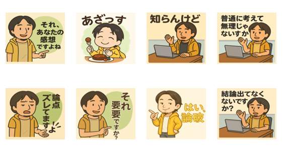 ゆる~い3頭身ひろゆきが登場! 論破やツッコミ、日常会話にぴったりのスタンプです。 ※LINE Creators Collaboration ひろゆきのコラボ参加スタンプです。