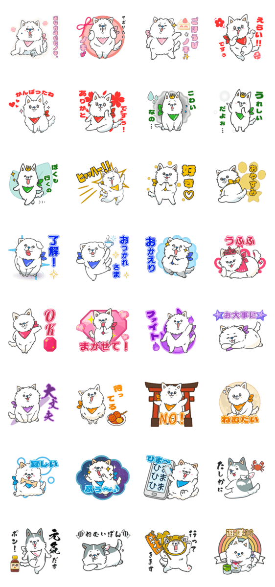 | スタンプ説明 | サモエドカフェスマイルのかわいいサモエドたちの日常で使いやすいスタンプです |