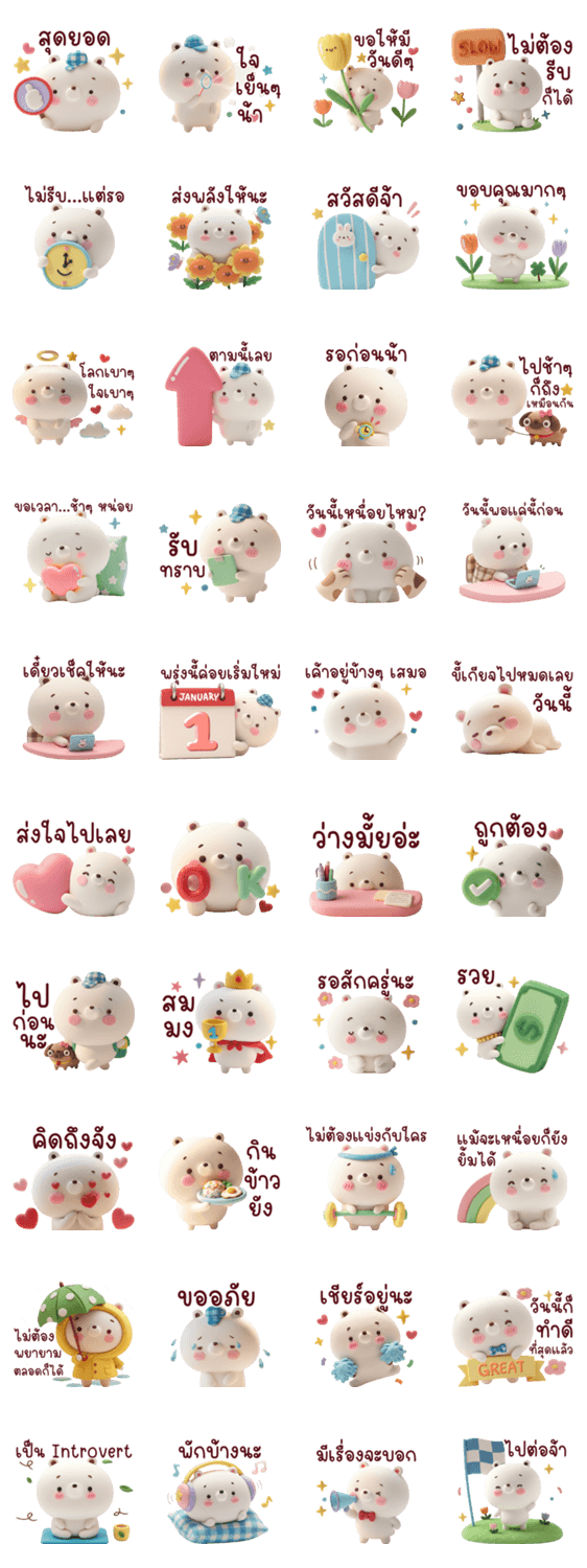 KunKuma is a soft and calm white bear with rosy cheeks, perfect for expressing warm, gentle, and slightly playful feelings in everyday chats.