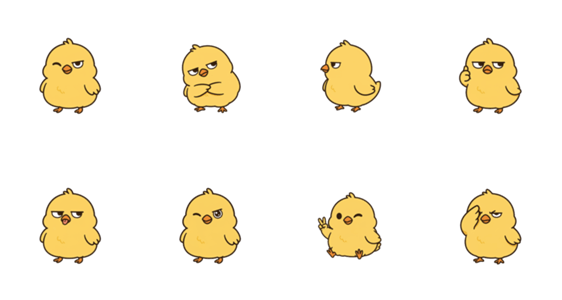 ウィンク、腕組み、無視、サムズアップ、舌出し、疑問視、ピースサイン、フェイスパームなど個性的な表情とポーズで日常会話を盛り上げます