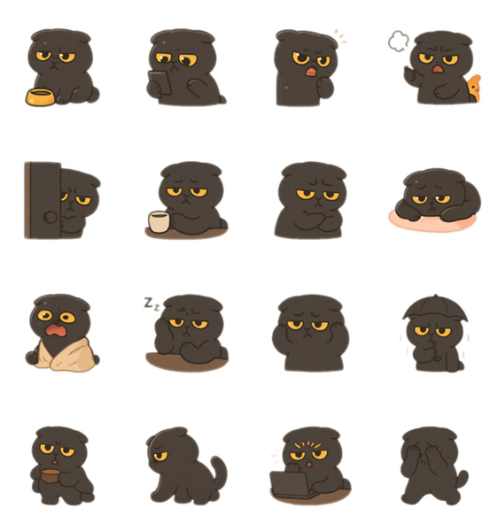 Scottish Fold cat V4 Black coat gold eye -LINEスタンプマニア