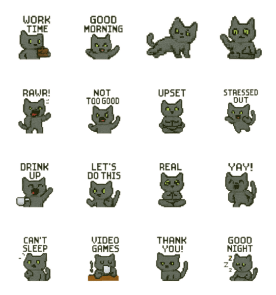 Grey Korat cat with green eyes is here to help you express yourself in pixel style