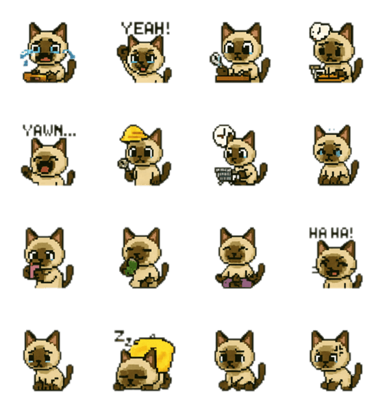 Pixel Series V2 Siamese cat seal point -LINEスタンプマニア