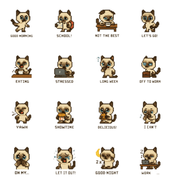 Pixel Series V1 Siamese Cat Seal Point -LINEスタンプマニア