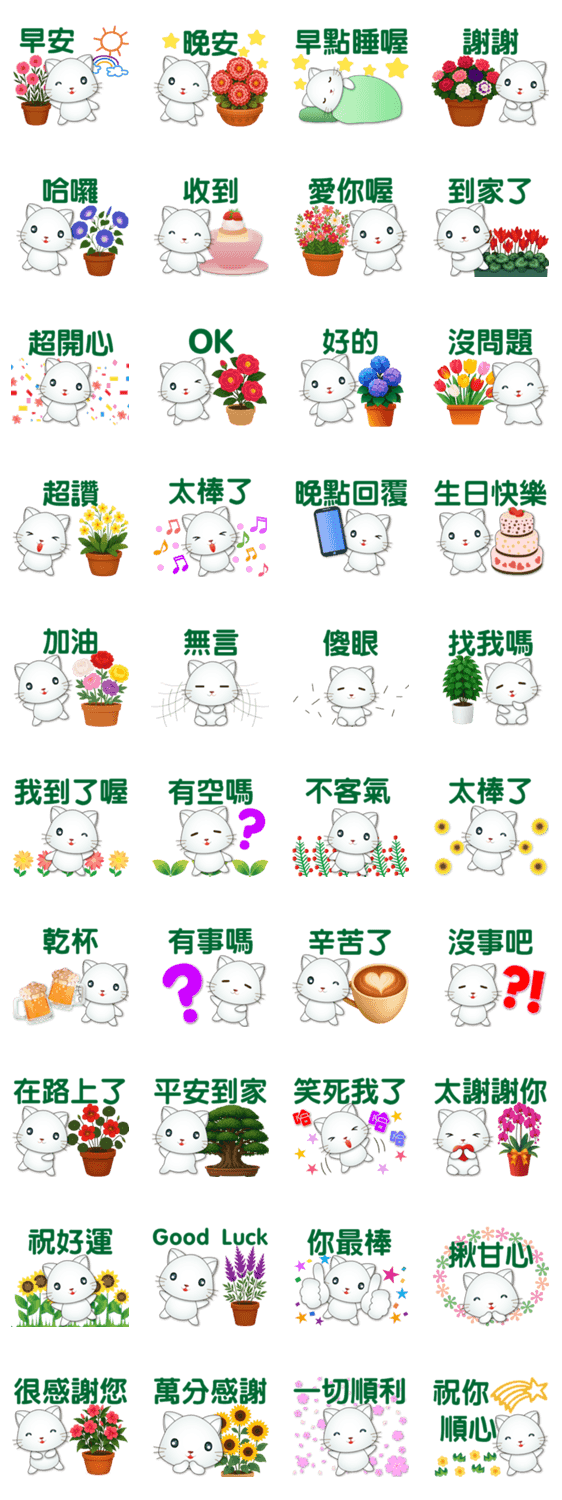 | スタンプ説明 | Cute White Cat *Useful Daily Greetings |