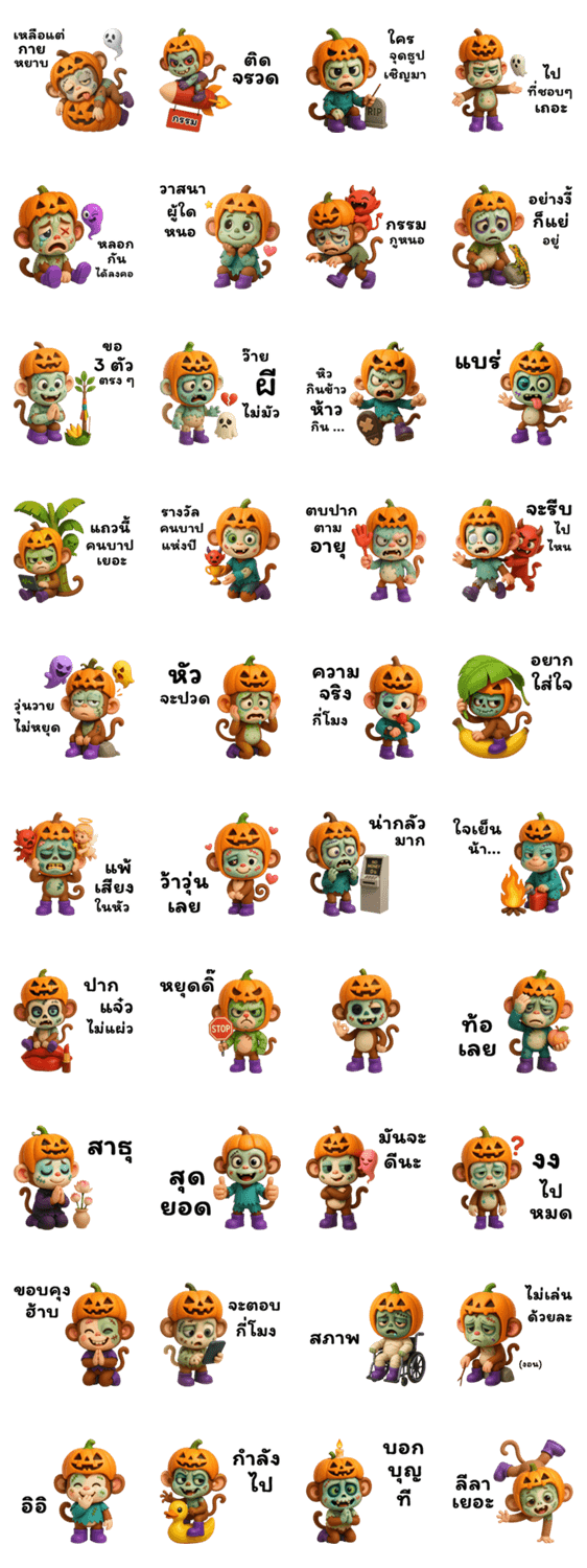 Lakyim: Pumpkin-Hat Zombie Monkey -LINEスタンプマニア