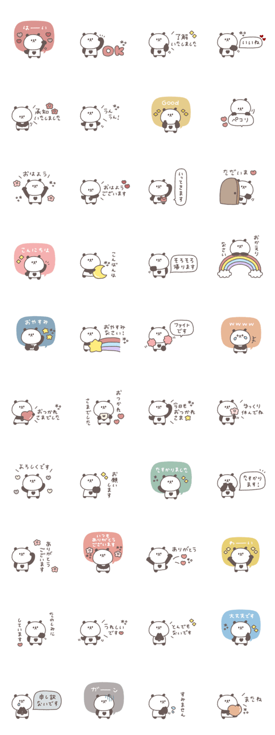一つあると便利な小さくてかわいいぱんだのスタンプです。 パンダ/大人可愛い/シンプル/あいさつ/吹き出し/くすみカラー/敬語