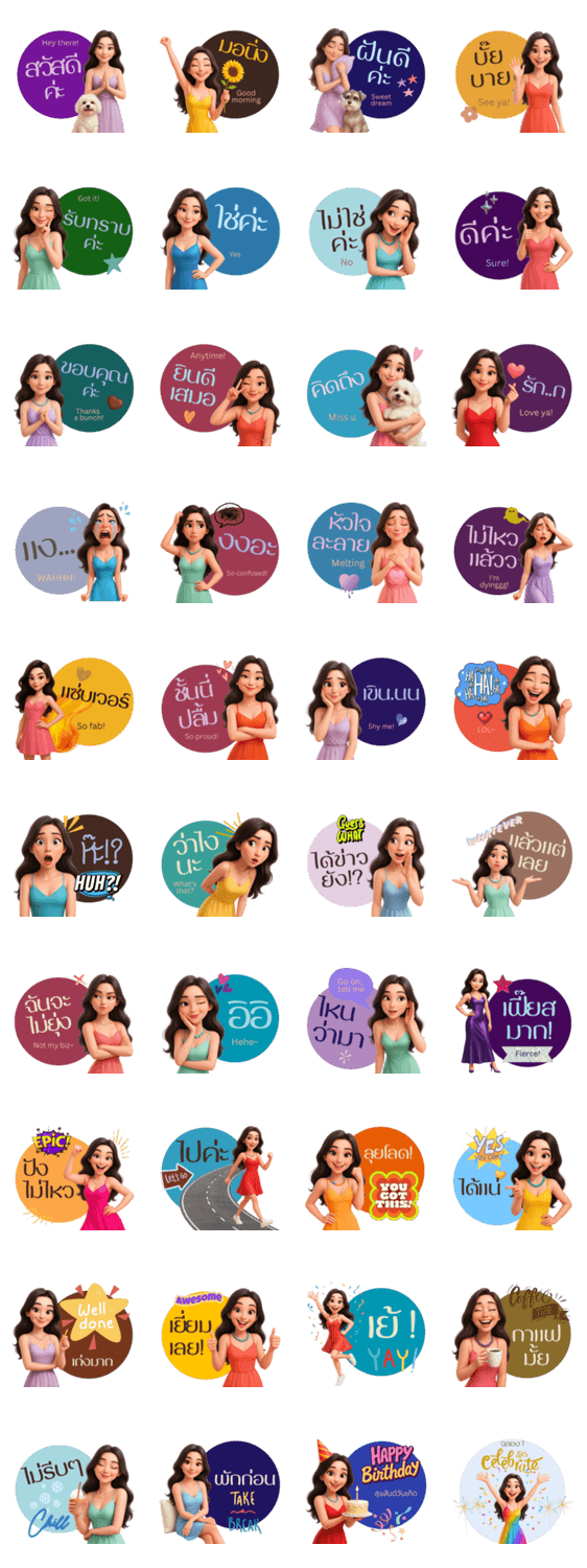 A confident, cheerful woman expressing every mood - cute, fierce, fun, and full of style! Perfect stickers to brighten every chat!
