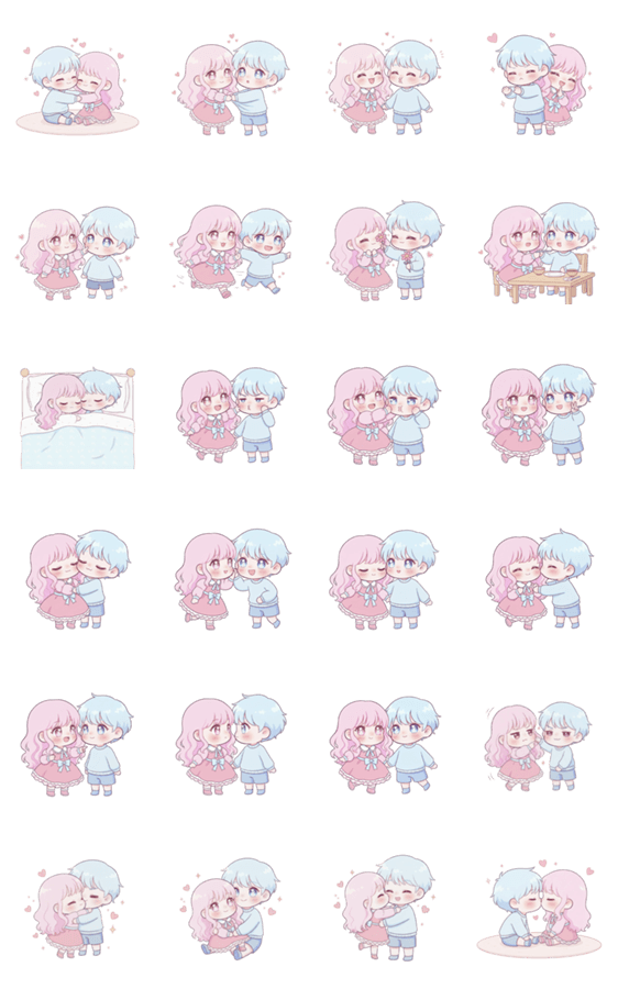 A collection of soft and sweet couple stickers, perfect for expressing warm and gentle feelings to your loved one in a dreamy pastel style.