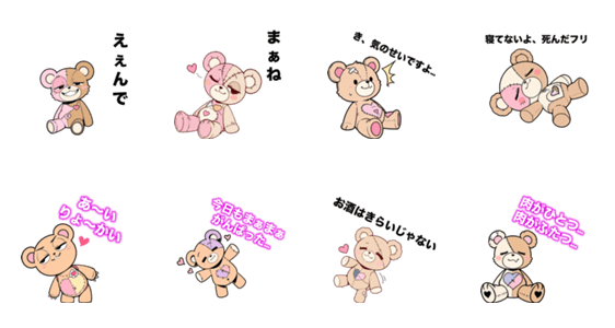 ゆるくてちょっとシュールなテディベアが、 あなたの気持ちを淡々と代弁します。 日常会話にそっと添えるスタンプです。