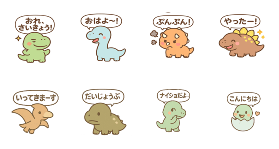 | スタンプ説明 | Adorable dinosaur stickers expressing daily emotions! Perfect for chats cheerful greetings,and playful moods brighten every conversation. |