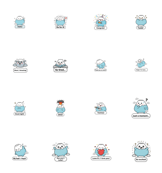 | スタンプ説明 | Mt. Fuji has feelings too! Fu-chan shows all emotions from super happy to super mad. Use these cute Japanese-style stickers to express yourself every day! |