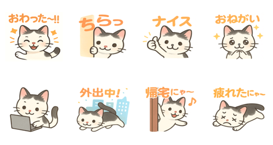 オンザ眉猫の日常(仕事編)を描いた使いやすいスタンプ集!