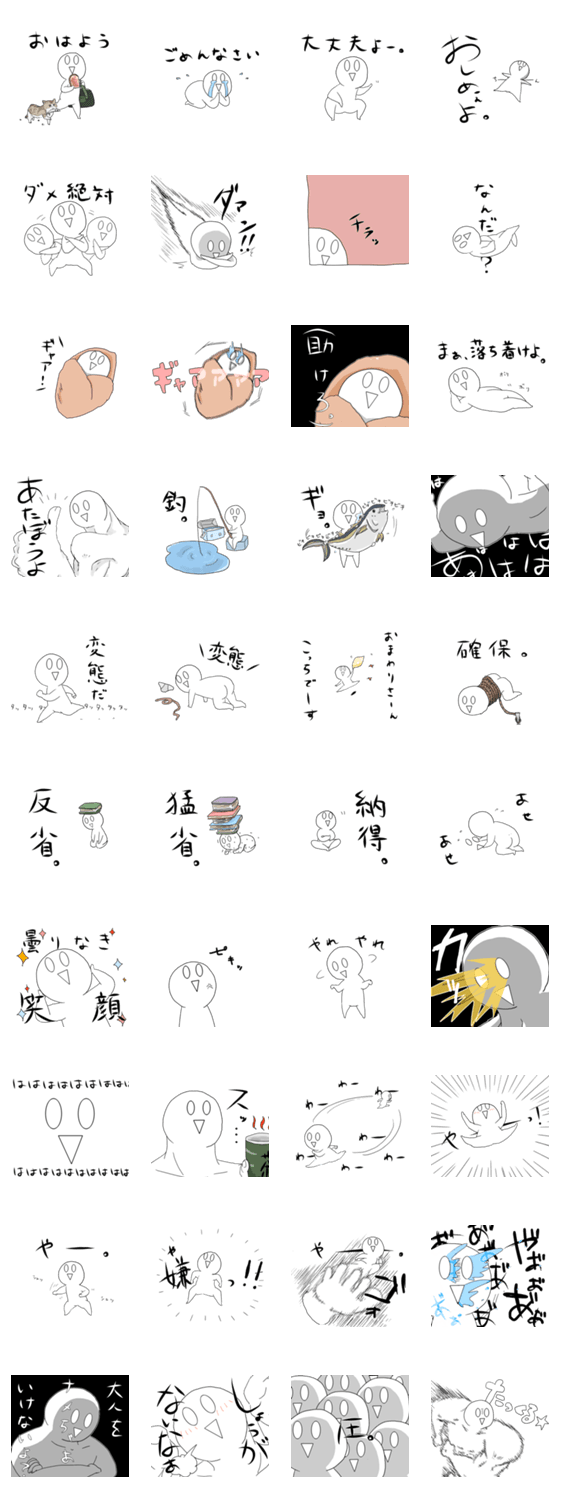 はりついた笑顔の人のスタンプ第5弾。引き絵多めの、圧それなりです。