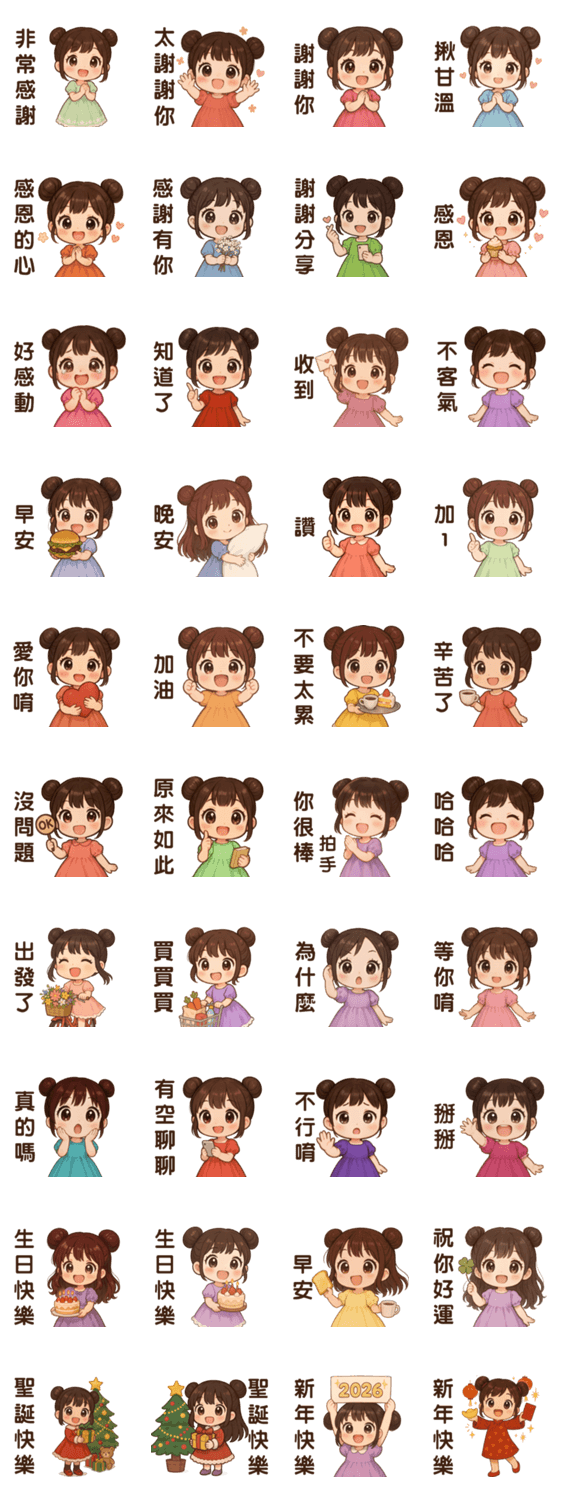 | スタンプ説明 | Cute Girl **Practical Daily Stickers** |